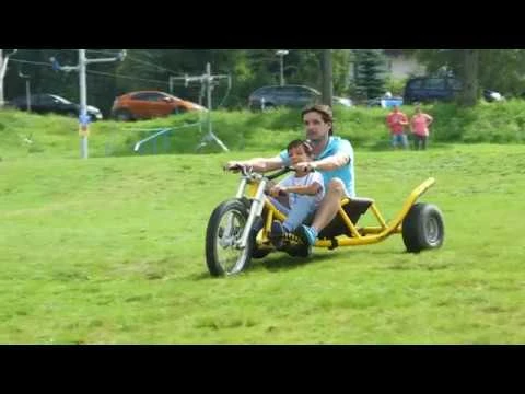 Treten Sie in die Pedale eines speziellen Dreirads. Es macht wirklich Spaß, mit einem Mountaincart einen grasbewachsenen Hügel hinunterzufahren. Sie müssen keine Angst haben. Die Fahrgeschwindigkeit lässt sich einfach durch zwei Sicherheitsbremsen regulieren. Jedes Dreirad hat zwei Sitze mit einer Gesamttragfähigkeit von 100 Kilogramm. Allein fahren dürfen Kinder ab 12 Jahren.
