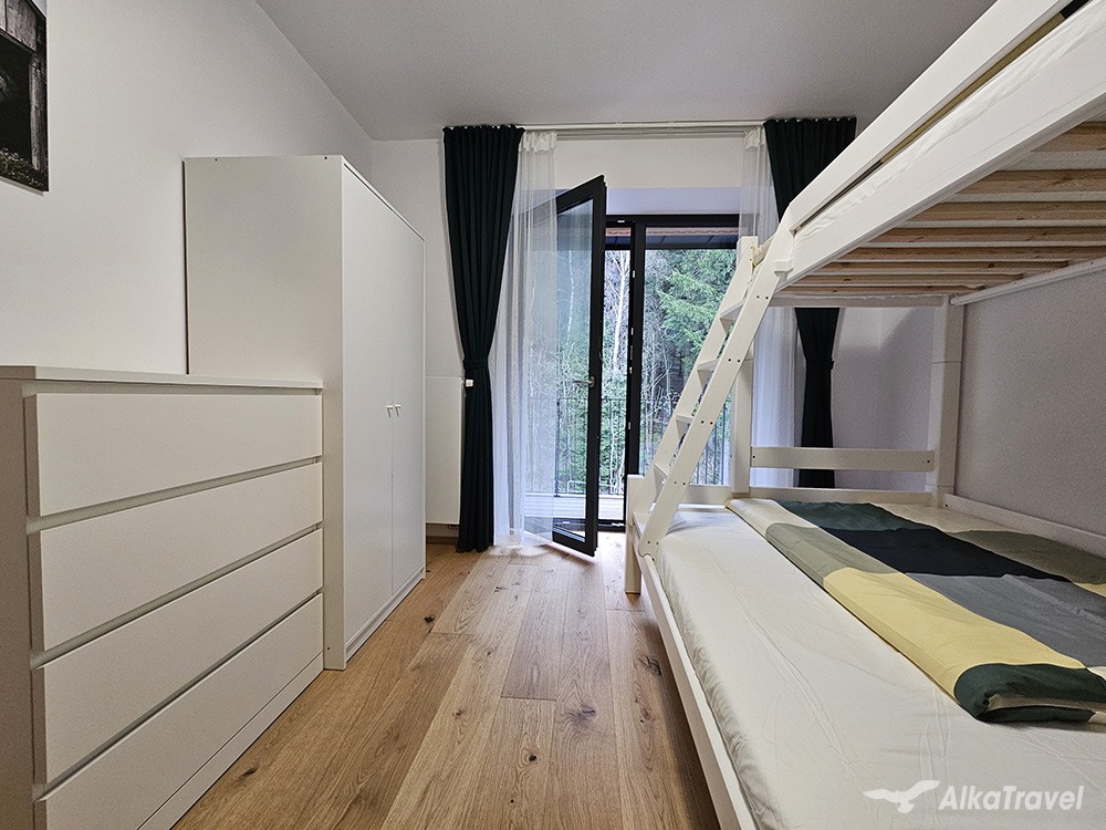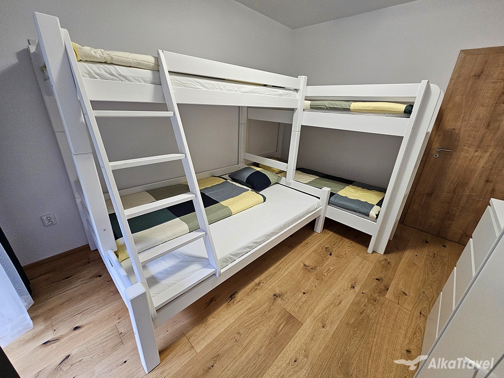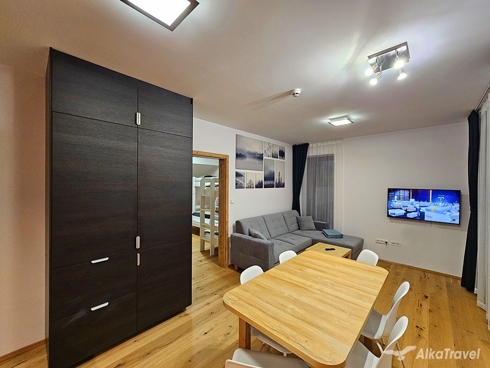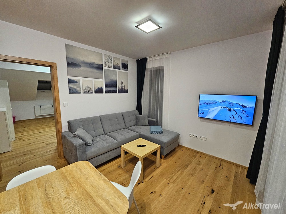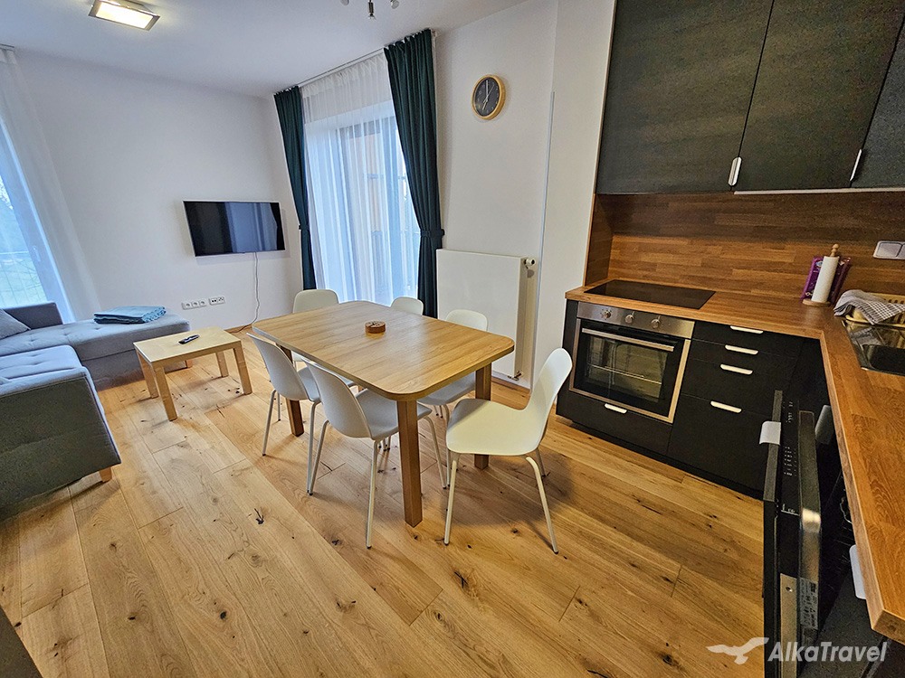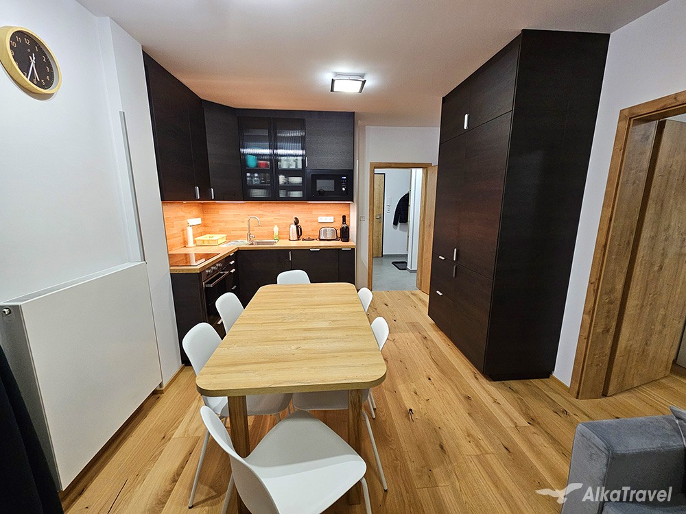 Přednosti apartmánu: Ideální pro dvě rodiny. Komfortní ubytování v novém apartmánovém domě mimo velkého turistického ruchu, avšak v blízkosti zábavy po celý rok.