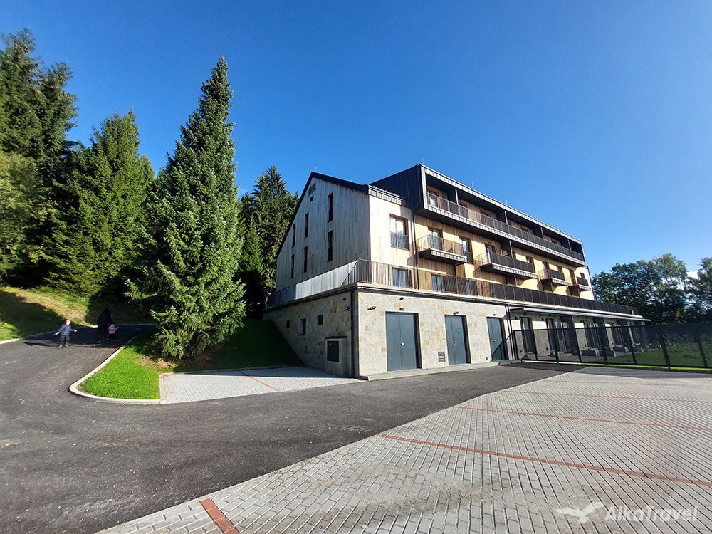 Moderní apartmánové ubytování s WiFi v rekreačním domě s wellness jen cca 500 m od lyžařského vleku a s možností wellness přímo v domě (sauna, odpočinková zóna).